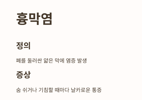 - 폐를 둘러싼 얇은 막(흉막)에 염증이 생긴 것입니다.