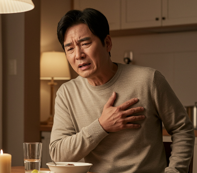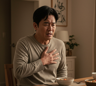 - 가슴이 '타는 듯한', '화끈거리는' 통증(속쓰림)을 유발하며, 심장 문제로 오인하기 쉽습니다.