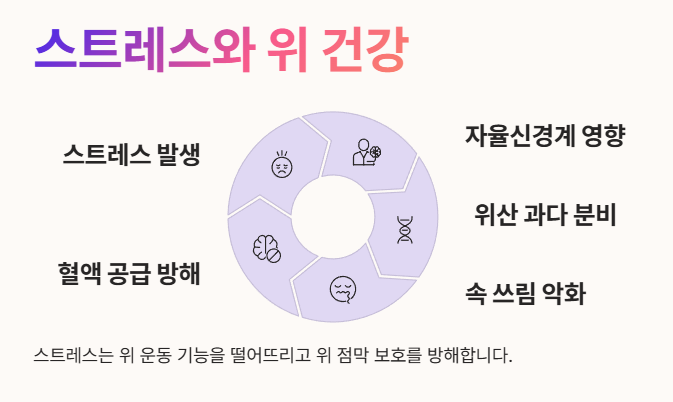 - 스트레스는 우리 몸의 자율신경계에 영향을 미쳐 위산이 과도하게 분비되게 만들어요.