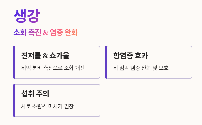3. 🧡 소화 촉진 염증 완화, 생강