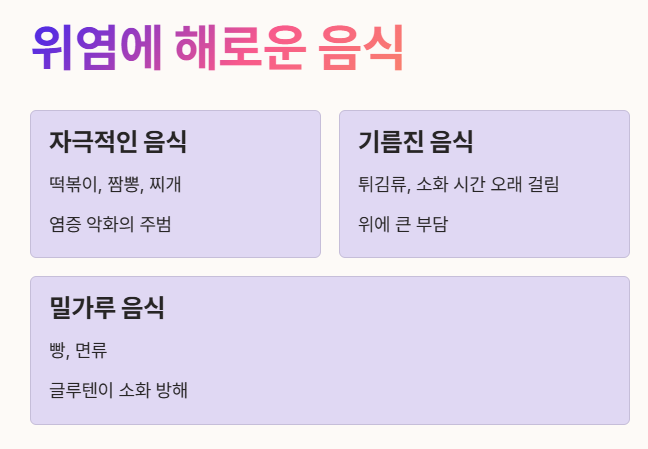 - 자극적인 음식은 위 점막을 계속해서 손상시켜요. 🚫