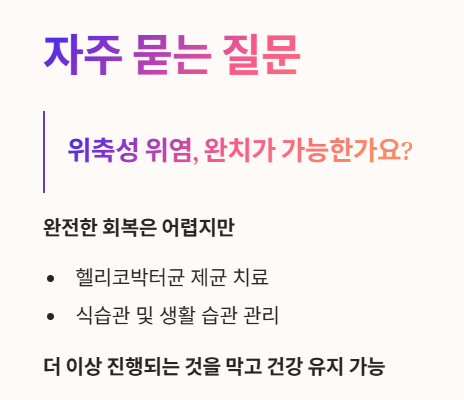 - 안타깝게도 한번 얇아지고 변형된 위 점막을 완전히 정상으로 되돌리는 것은 어려워요. 😥
