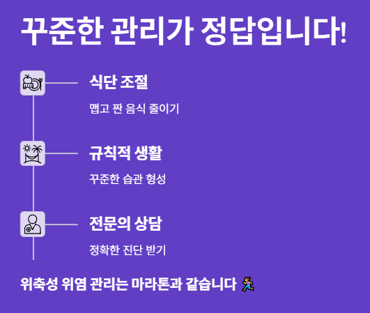 위축성 위염 관리는 단거리 경주가 아닌, 꾸준함이 중요한 마라톤과 같아요. 🏃♂️