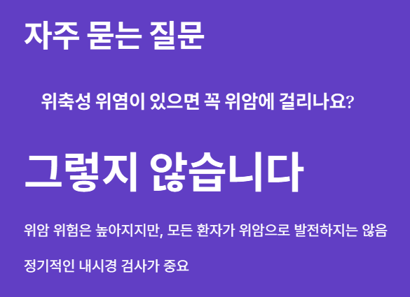 - 위축성 위염이 위암의 위험을 높이는 '전암 단계'인 것은 맞지만, 모든 위축성 위염 환자가 위암으로 발전하는 것은 아닙니다. 🙅♀️