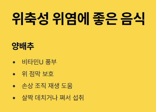- 양배추에 풍부한 비타민U는 위 점막을 보호하고 손상된 조직의 재생을 도와주는 대표적인 위 건강 식품이에요. 🥬