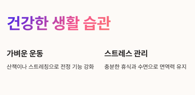 • 과격한 운동은 피하되, 가벼운 산책이나 스트레칭은 전정 기능 강화에 도움이 될 수 있습니다.