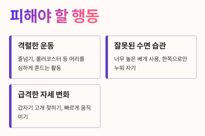 Q4: 이석증 예방을 위해 피해야 할 행동이 있나요?
