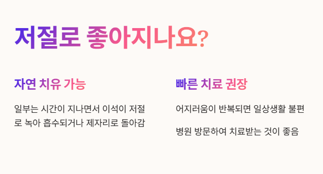 • 네, 일부는 시간이 지나면서 이석이 저절로 녹아 흡수되거나 제자리로 돌아가기도 해요.