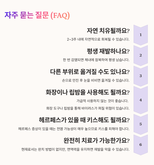👉 현재로서는 완치 방법이 없습니다. 하지만 면역력을 유지하면 재발을 막을 수 있습니다.