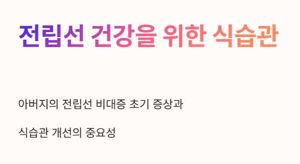 - 이미 전립선비대증이나 전립선염 등의 증상이 있다면, 식단 관리와 함께 반드시 전문의의 진료와 치료를 병행해야 합니다.
