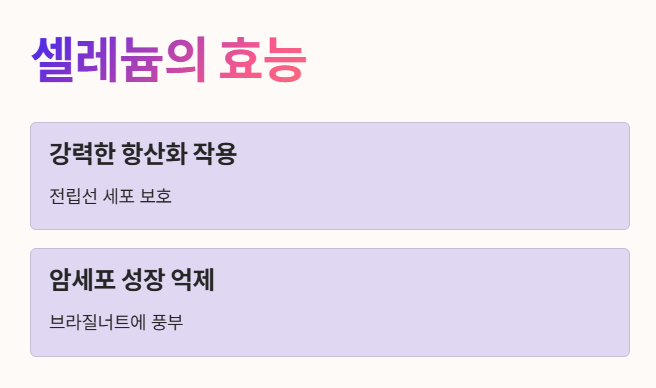 - 셀레늄 역시 강력한 항산화 작용으로 전립선 세포를 보호하고 암세포의 성장을 억제하는 데 도움을 줄 수 있어요.