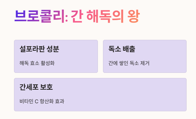 브로콜리는 간의 해독을 돕는 설포라판 성분이 풍부해요.
