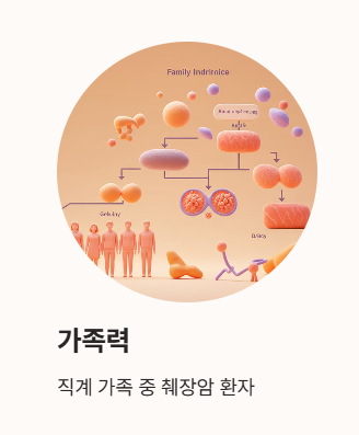 - 직계 가족 중에 췌장암 환자가 있는 경우, 없는 사람보다 발병 위험이 높아져 유전적 요인도 관련이 있는 것으로 보입니다.