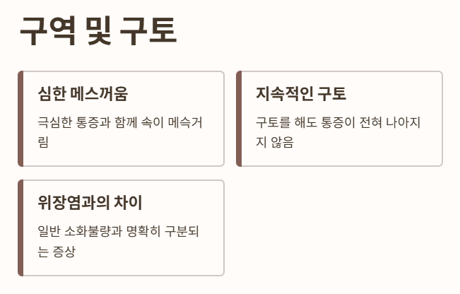 - 하지만 구토를 해도 통증이 전혀 나아지지 않는 것이 일반적인 위장염과의 차이점입니다.