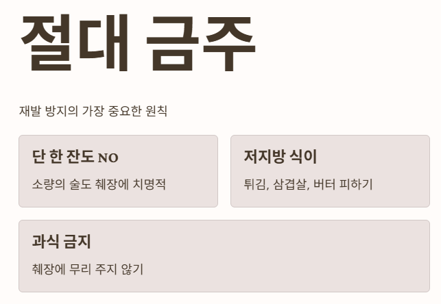 - 가장 중요한 것은 술을 완전히 끊는 것입니다. 🚫