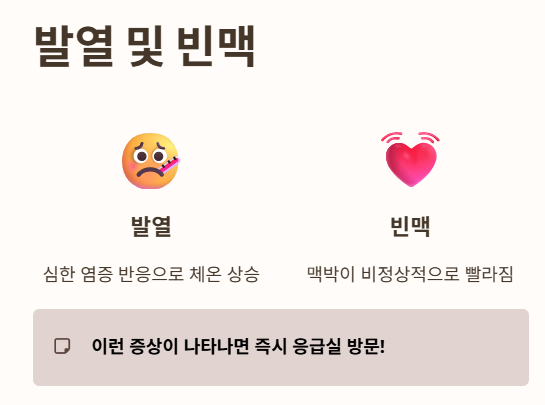 3) 발열 및 빈맥