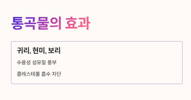 - 귀리(오트밀), 현미, 보리 등에는 수용성 섬유질이 풍부해 콜레스테롤이 몸에 흡수되는 것을 막아줘요.