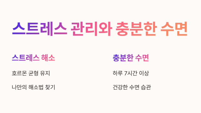 - 나만의 스트레스 해소법을 찾고, 하루 7시간 이상 푹 자는 습관을 들여보세요. 😴