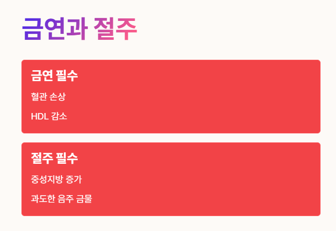 • 흡연은 혈관을 손상시키고 HDL 콜레스테롤을 감소시켜요.