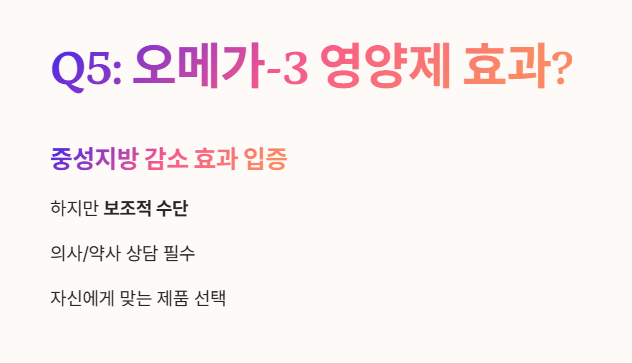Q5: 오메가-3 같은 영양제가 콜레스테롤 관리에 도움이 될까요?
