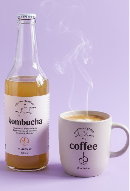 콤부차는 홍차나 녹차를 기본으로 발효시키기 때문에 미량의 카페인이 포함되어 있습니다. 일반적으로 콤부차 한 병(약 350ml)에는 10-15mg 정도의 카페인이 들어 있으며, 이는 커피 한 잔(100-150mg)과 비교하면 매우 낮은 수치입니다.