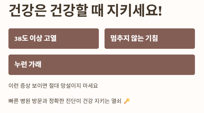 빠른 병원 방문과 정확한 진단만이 건강을 지키는 열쇠랍니다. 🔑
