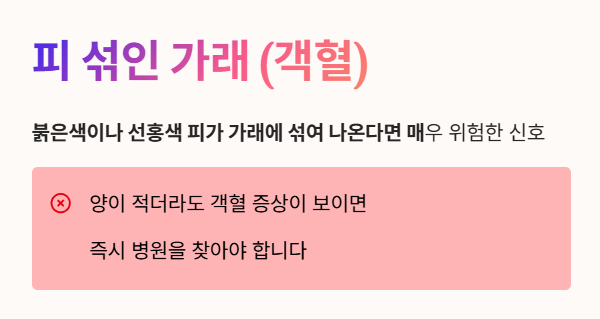 - 양이 적더라도 객혈 증상이 보이면 즉시 병원을 찾아야 합니다.