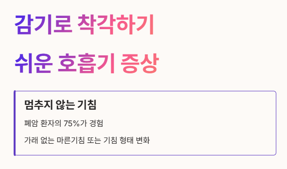폐암 초기증상은 감기나 기관지염과 매우 비슷해서 방치하기 쉬워요.