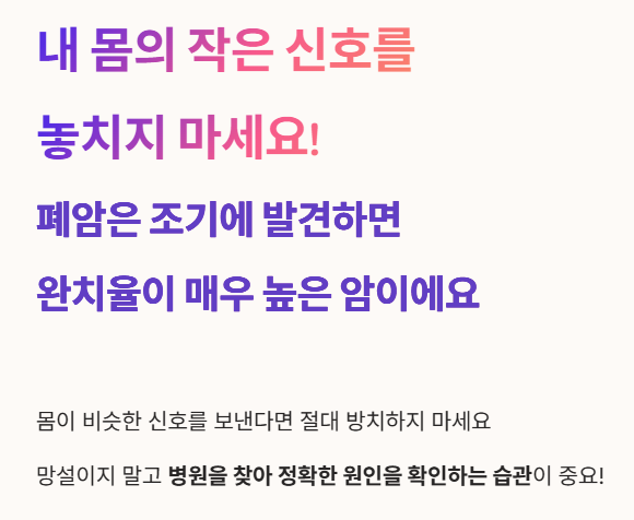 폐암은 조기에 발견하면 완치율이 매우 높은 암이에요. 👍