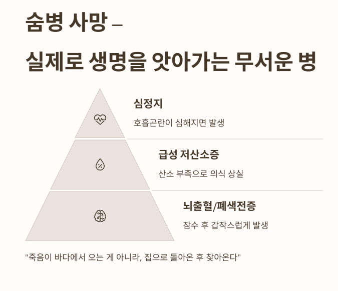 “죽음이 바다에서 오는 게 아니라, 집으로 돌아온 후 찾아온다.”는 말이 있을 정도로, 숨병은 조용히, 그러나 무섭게 다가오는 병입니다.