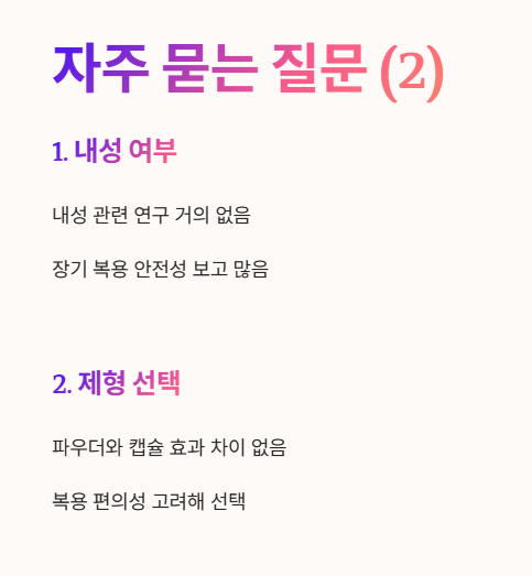하지만 검색을 해보면 항상 따라오는 의문점이 하나 있어요. “MSM 부작용은 없을까?” 저도 솔직히 좀 걱정됐는데요.