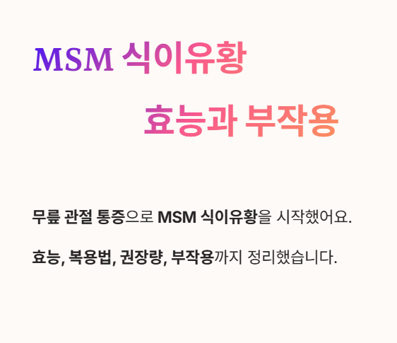 > 아래 영상을 통해 MSM의 효능부터 부작용까지 간단하게 정리해드려요! 👇